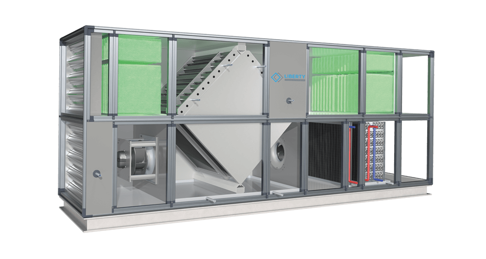 Met de hygiëne van onze volledig gladde kunststof luchtbehandelingskasten geniet u dan van gefilterde frisse buitenlucht met weinig fijnstof. Door het kunststof ontwerp van de Liberty luchtbehandelingskasten zijn ze licht in gewicht en goed te plaatsen op schooldaken met een beperkt draagvermogen.