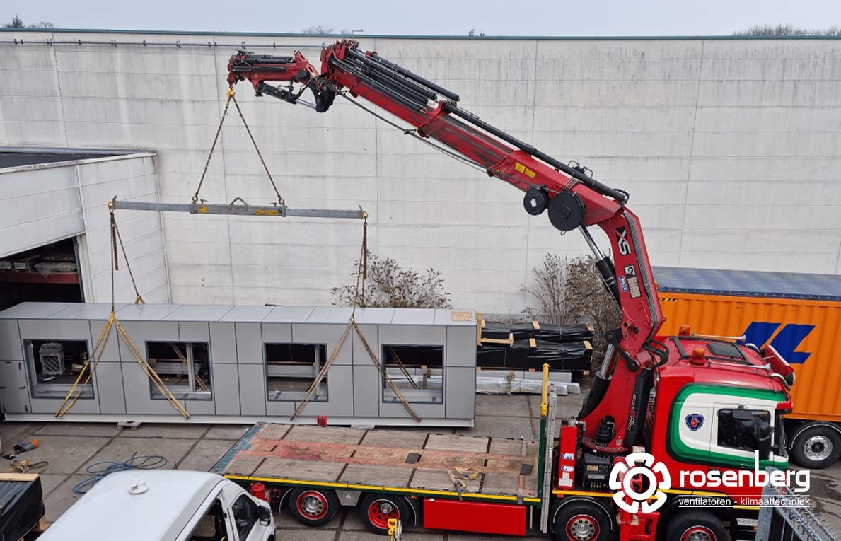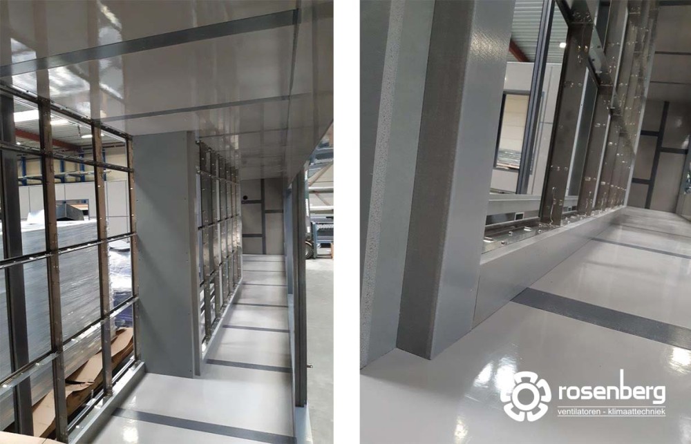 Wij maken naast standaard luchtbehandelingskasten ook graag klant-specifieke kasten. De wens van de klant is het uitgangspunt voor een technisch realiseerbare oplossing. Voor onze klant in Dubai hebben wij een plenum box gebouwd van zo’n 12 meter lang, bijna 3,50 meter breed en 2,30 meter hoog. Deze plenum dient voor de verdeling, filtering en optioneel koude-terugwinning van 204.000 m³/h lucht die door 4 High Plume Fans van MK plastics uit een geconditioneerde voedingsmiddelenfabriek wordt gezogen.